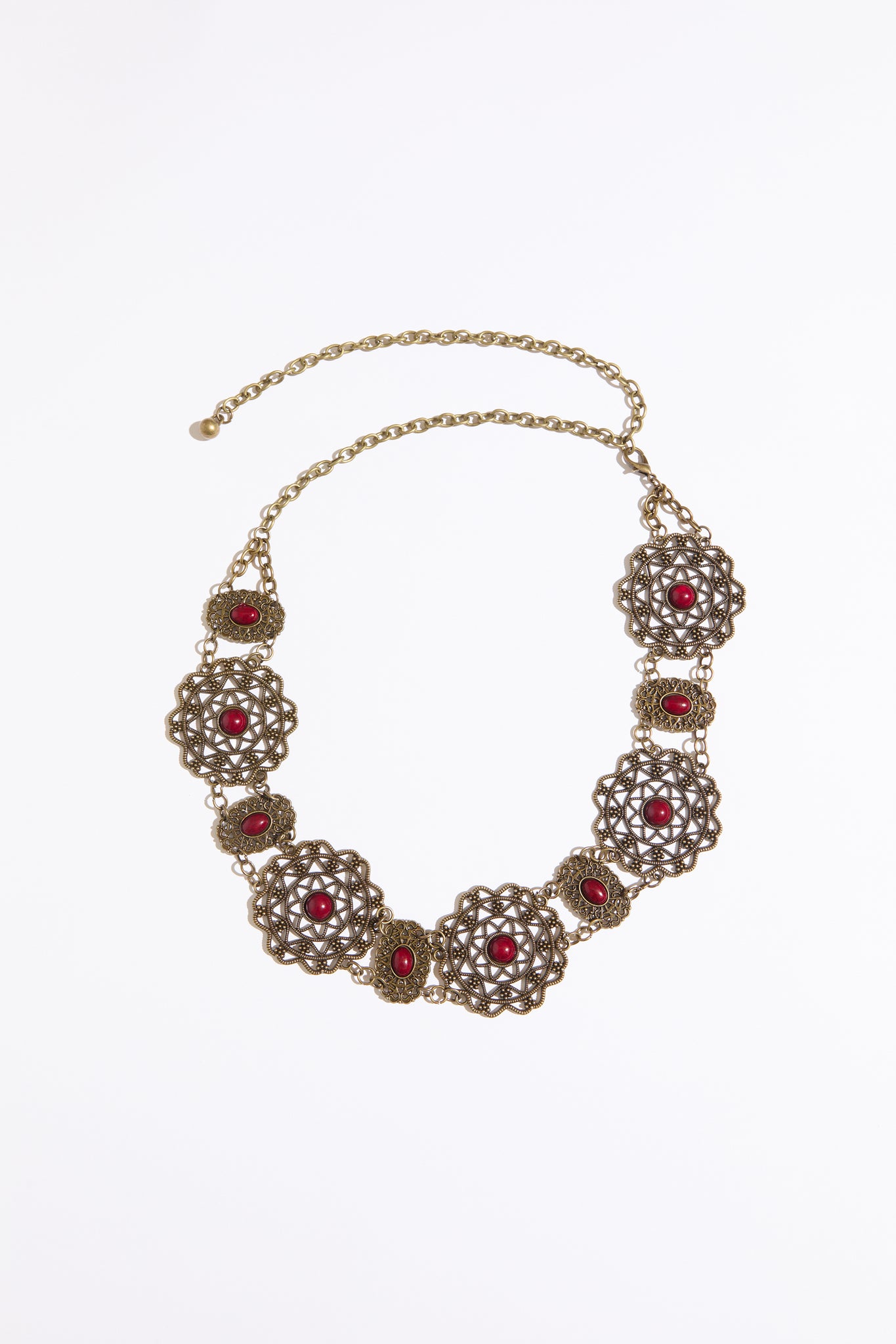 Elevate any outfit with the Cab Accented Filigree Chain Belt, a chic and sophisticated accessory designed to add texture and shine. Featuring intricate filigree details and cab accents along a draped chain, this belt brings a stylish, modern edge to dresses, skirts, or high-waisted pants.
