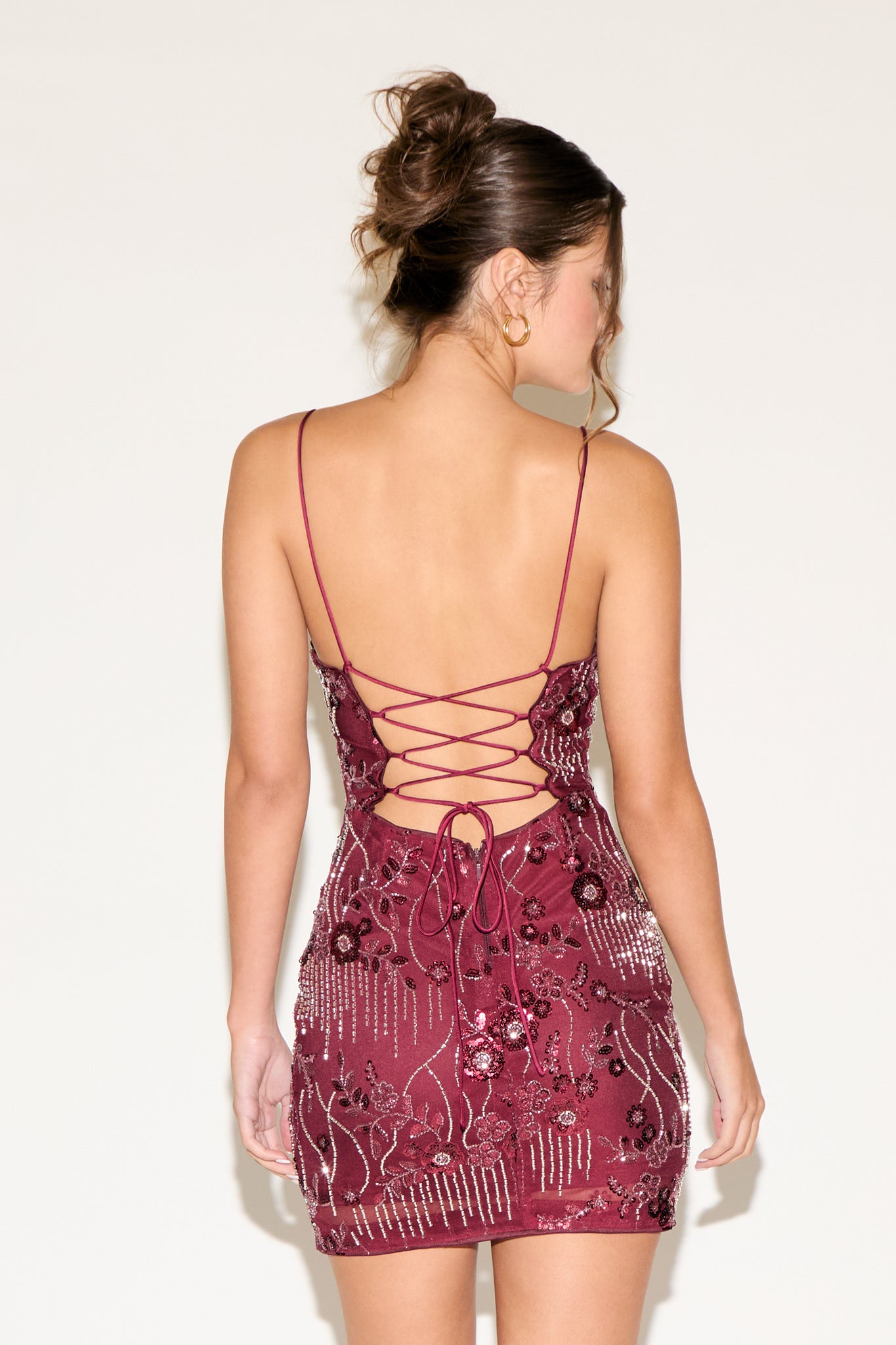 This strappy contrast beading mini dress brings a striking blend of glamour and edge. Designed with intricate beaded detailing that catches the light beautifully, it offers a sleek, body-hugging silhouette perfect for night outs or events. The delicate straps and contrast embellishments add a chic, high-fashion finish to your party look.