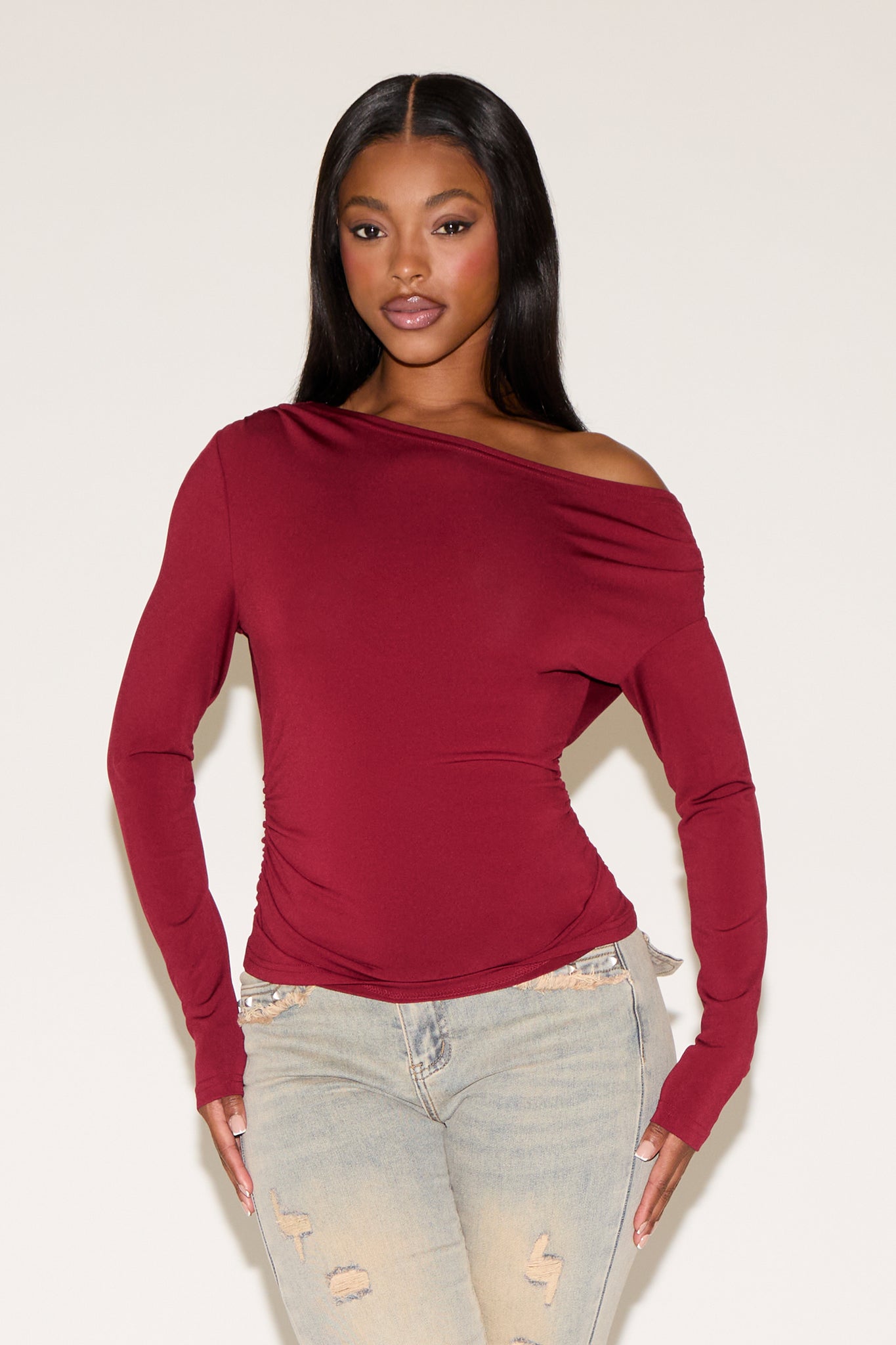 Elevate your look with this Asymmetric Off Shoulder Bodycon Long Sleeve Top. Featuring a sleek off-shoulder cut with an asymmetric neckline and a fitted bodycon silhouette, this top blends modern edge with effortless elegance. Perfect for nights out, parties, or chic layered looks.