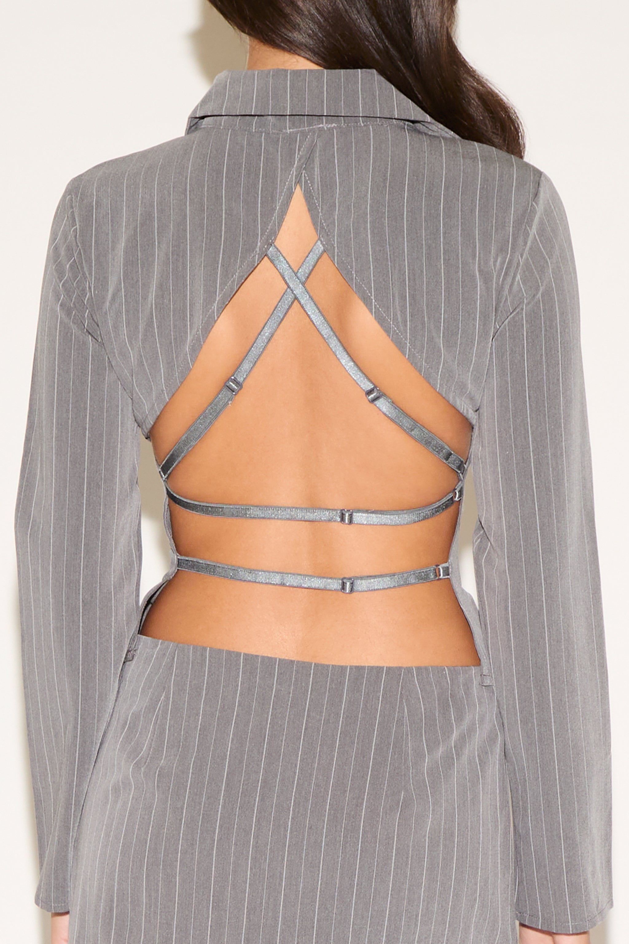The Pinstripe Collared Front Closure Long Sleeve Top brings a polished, tailored look with a modern twist. Featuring classic pinstripes, a structured collar, and a sleek front closure, it’s perfect for both office wear an38d chic casual outfits. Pair it with trousers or a skirt for a sophisticated, effortless style that transitions seamlessly from day to night.