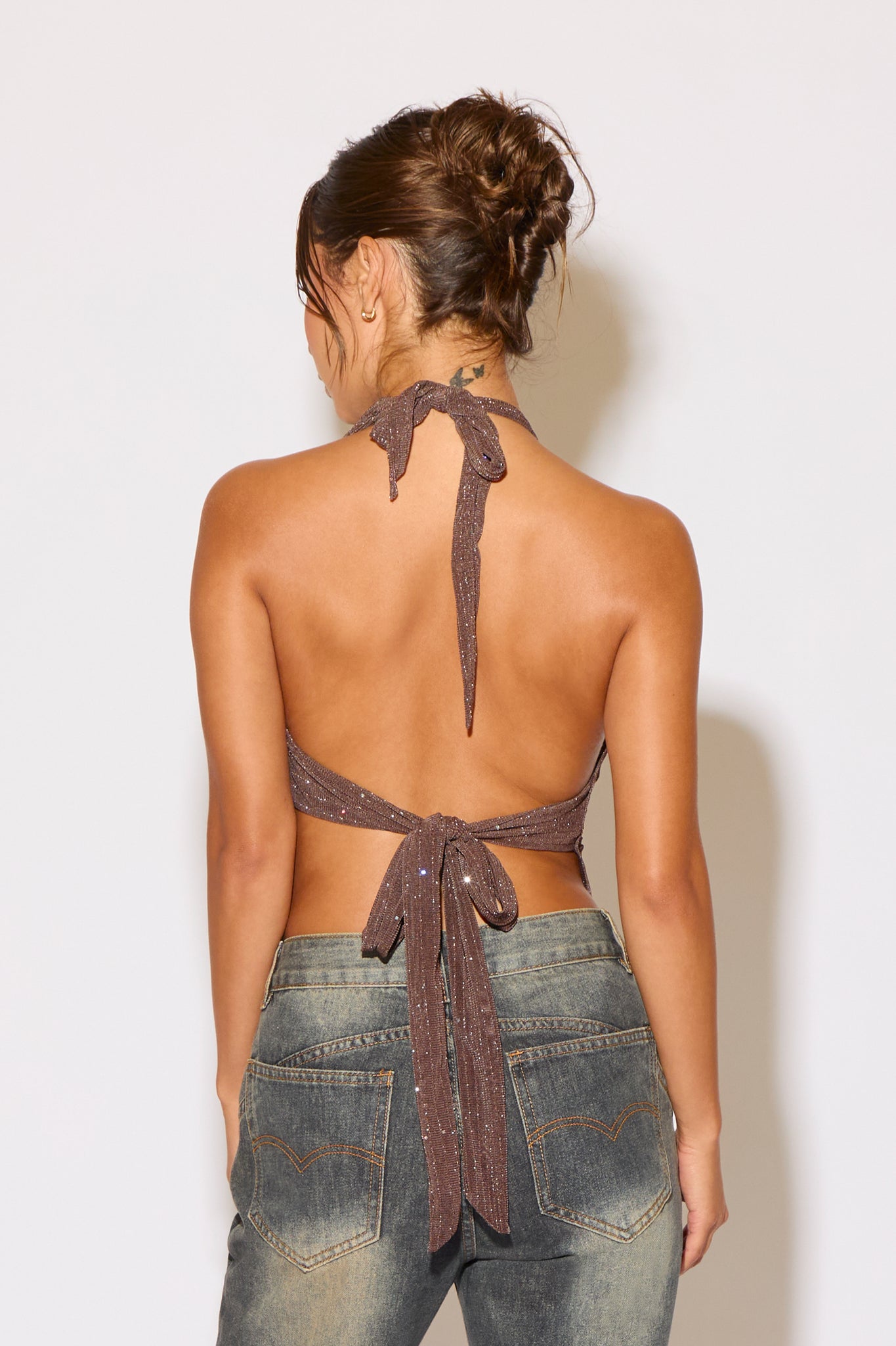Turn heads in this ultra-glam shimmer tie neck & back sheer sleeveless top. Designed with a delicate sheer finish and subtle sparkle, this statement piece features a flattering tie neckline and adjustable back tie for the perfect fit. Lightweight and flowy, it drapes beautifully for an effortlessly chic silhouette. Pair it with denim for a dressed-up casual vibe or style it with a mini skirt or trousers for a night-out look. This top is your go-to for sparkle with a soft, feminine edge.