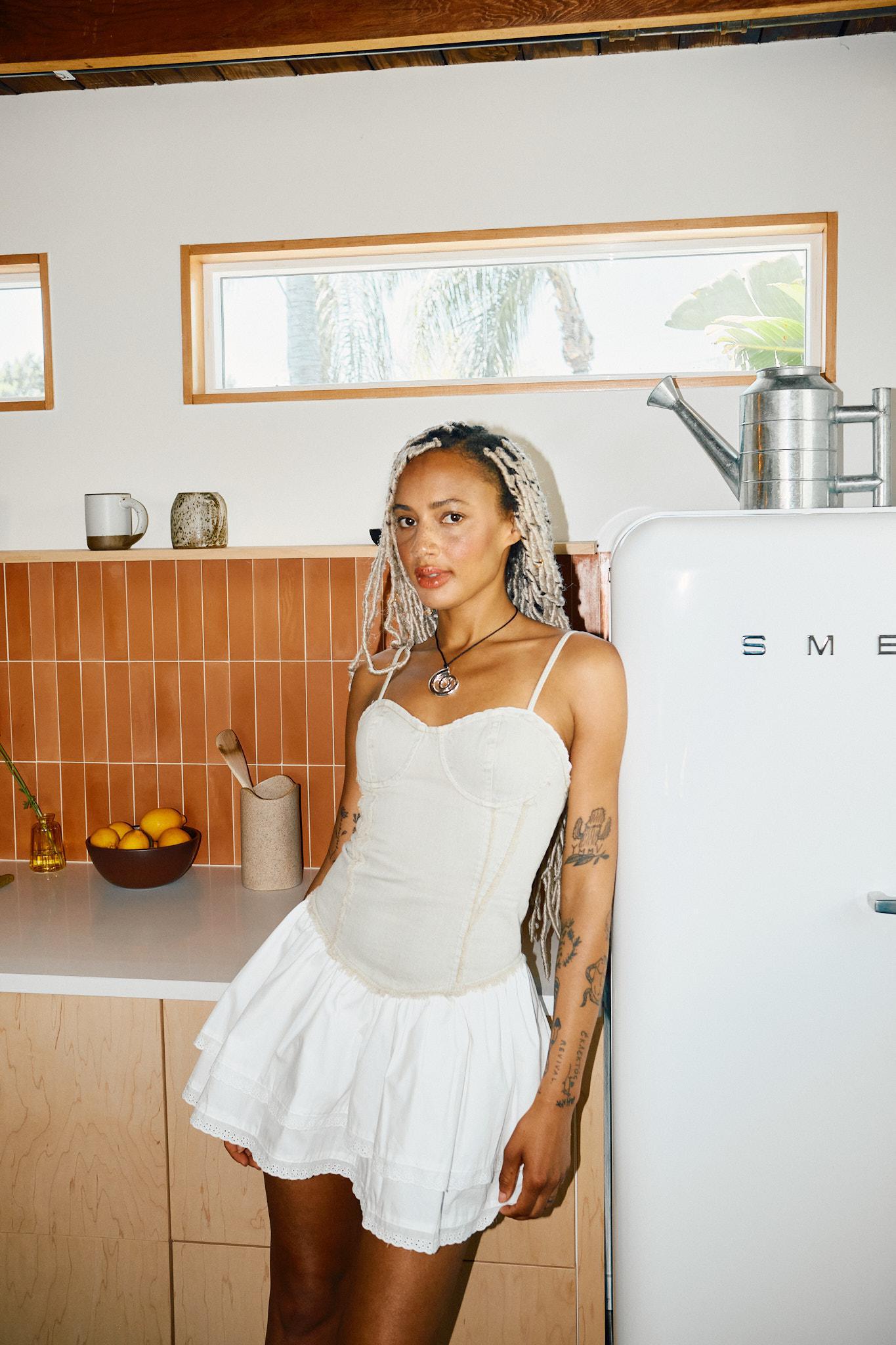 Turn up the charm in this denim mini dress, featuring delicate lace trim and a subtle skirt flare for a playful silhouette. The perfect mix of sweet and rugged, this piece brings a feminine twist to classic denim.