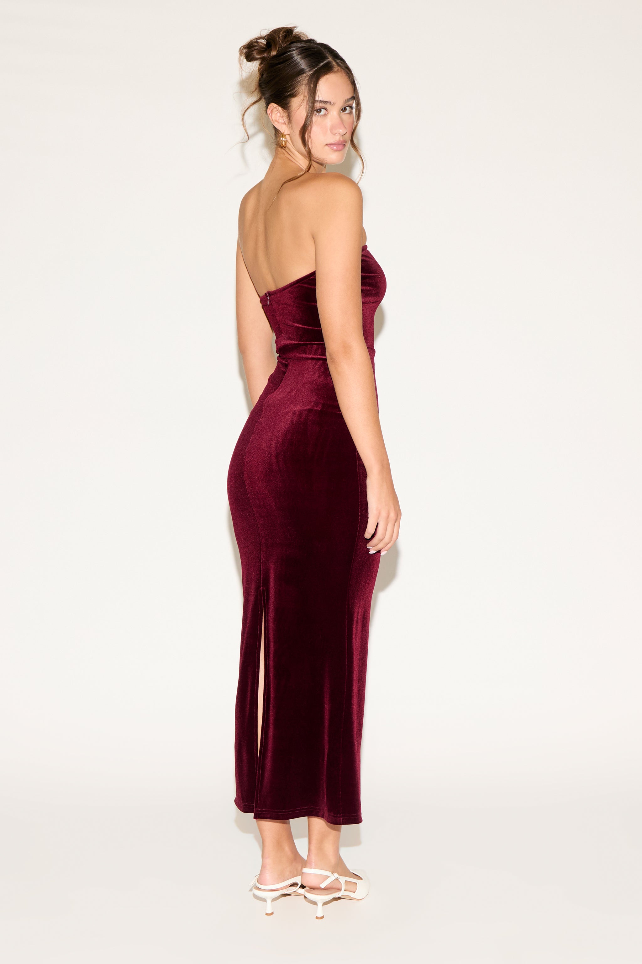 Turn heads in this velvet strapless tube top bodycon maxi dress, designed for a sleek and glamorous look. The luxurious velvet fabric hugs your curves, while the strapless tube top design adds a sophisticated, modern edge. Perfect for evening events or special occasions, this dress exudes elegance and confidence from every angle.